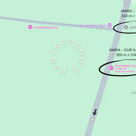 プラヤデルカルメン空港はこの海辺のHideaway In Tulum Zoneアパートから65キロメートルです。